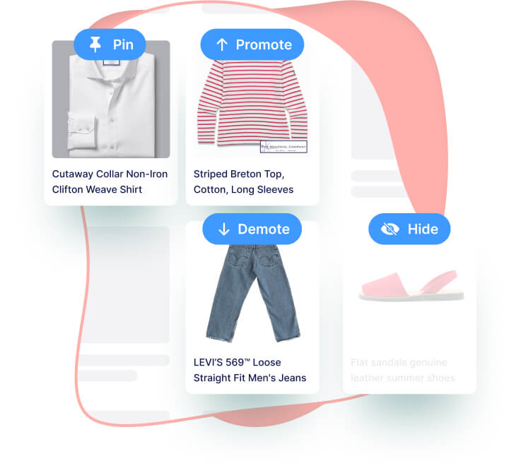Direct your audience to your best seller items. Add, edit or even remove synonyms and target search terms to the results you want your customers to find.